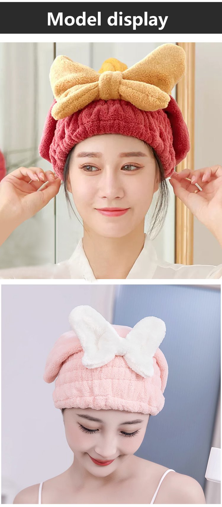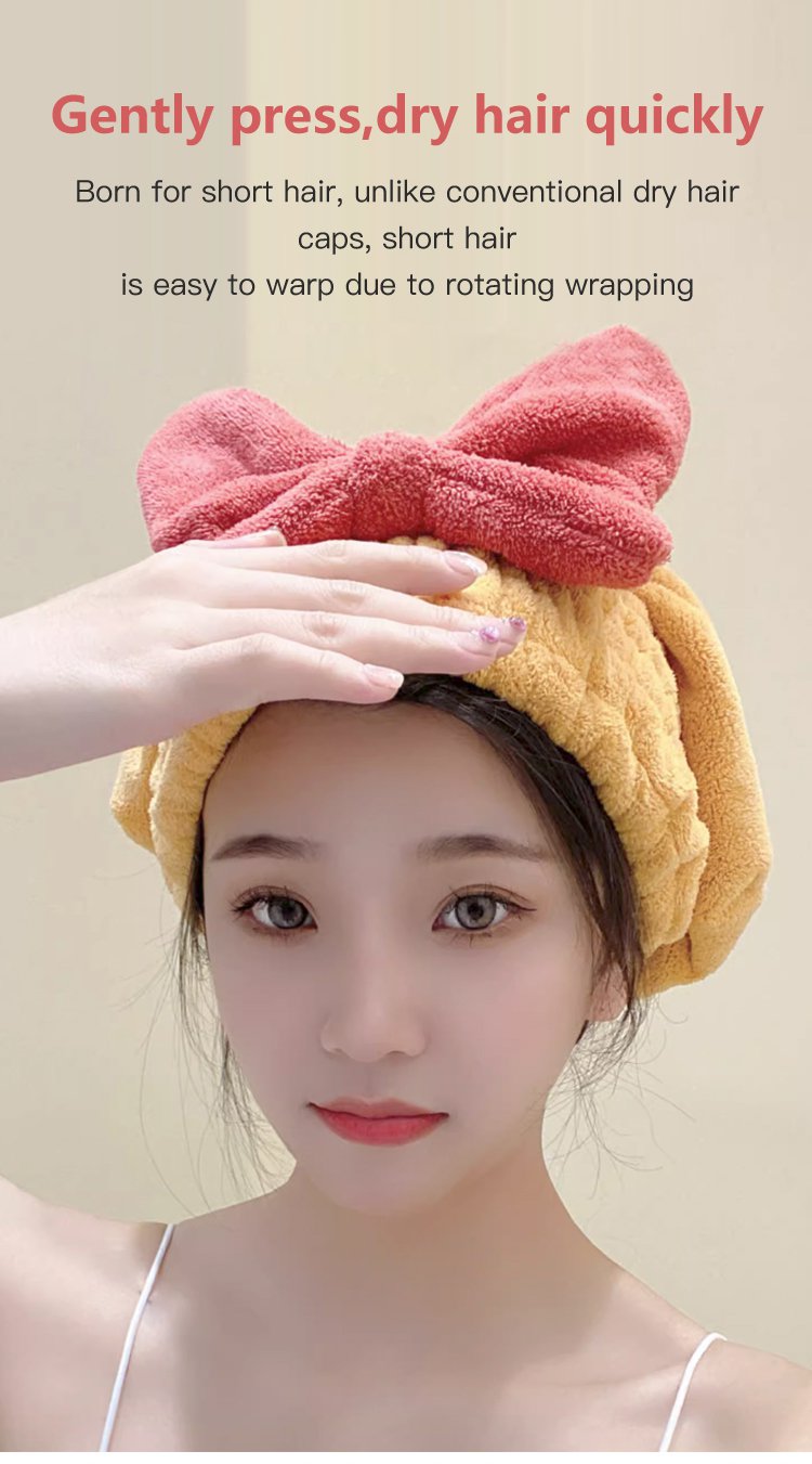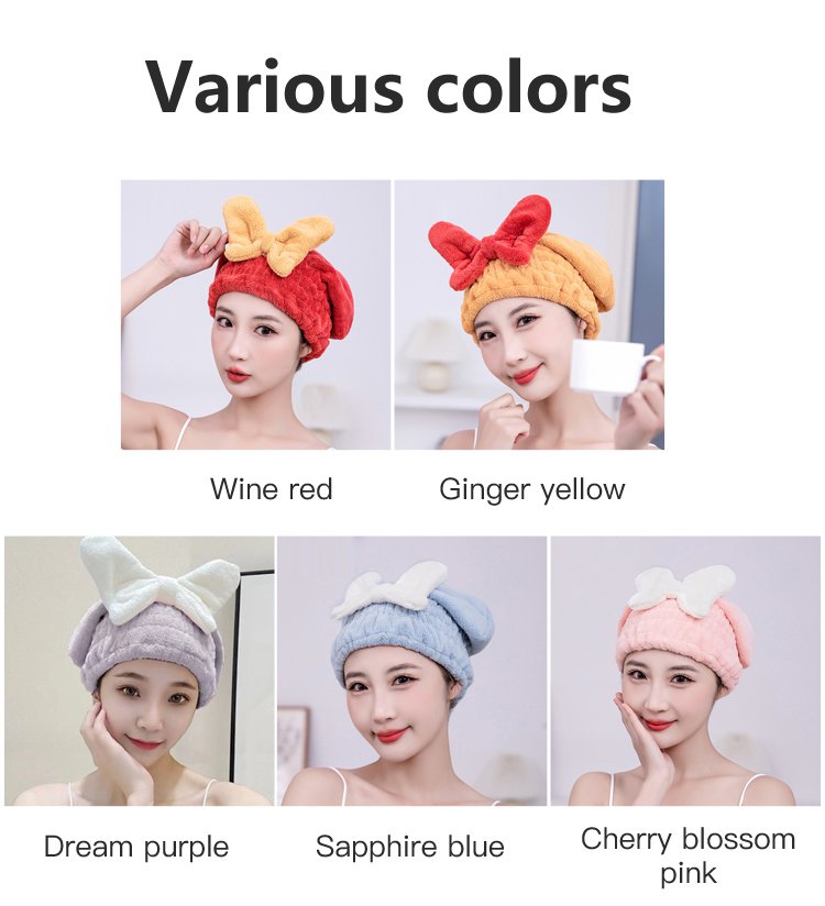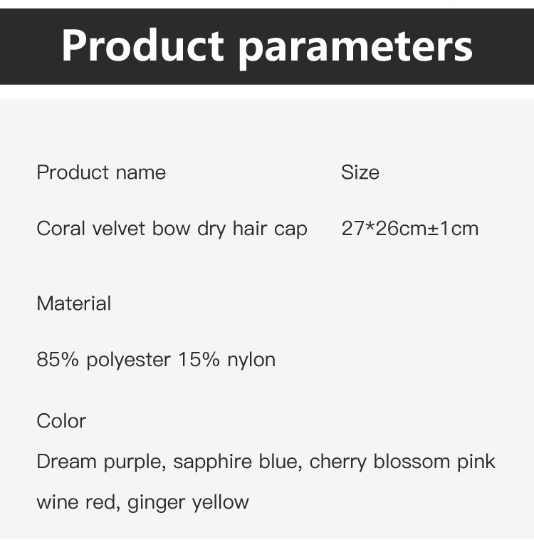 Coral velvet bow dry hair cap